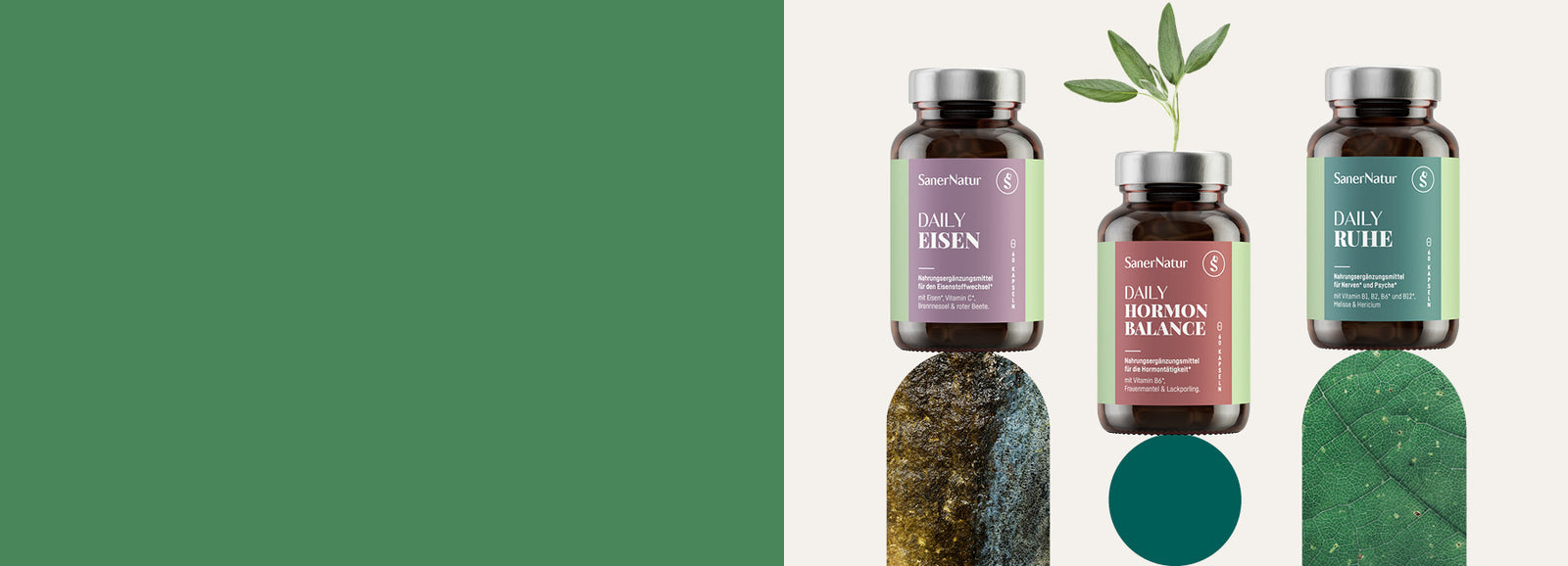SanerNatur DAILY sind Nahrungsergänzungsmittel, welche natürliche Pflanzenextrakte und hochwertige Mikronährstoffe zu einzigartigen Rezepturen kombinieren. Tag für Tag unterstützen sie dich dabei, dein Bestes zu geben.
