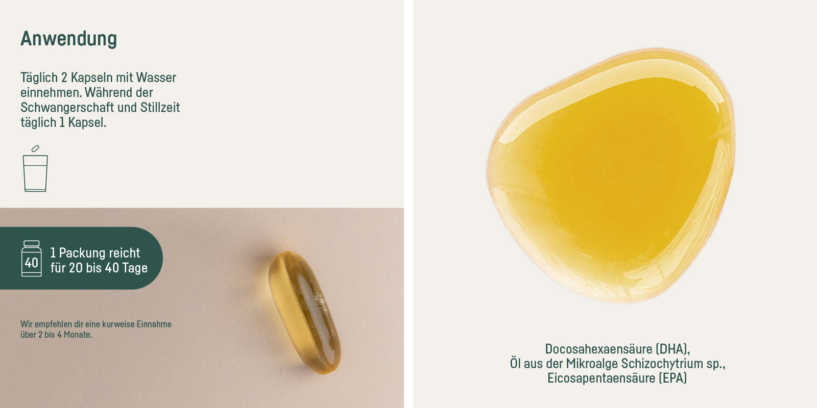*Eine ausreichende Versorgung mit Omega-3 DHA trägt zur Erhaltung einer normalen Gehirnfunktion und Sehkraft bei (Wirkung bei 250 mg DHA pro Tag).