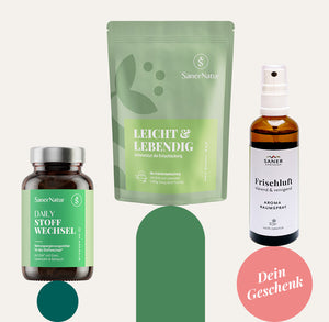 SanerNatur Daily Stoffwechsel stellt die tägliche Versorgung deines Stoffwechsels sicher, während die Bio Teemischung leicht & lebendig diese sanft ergänzt.