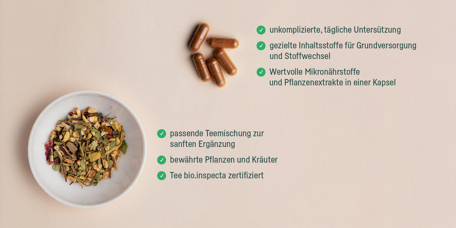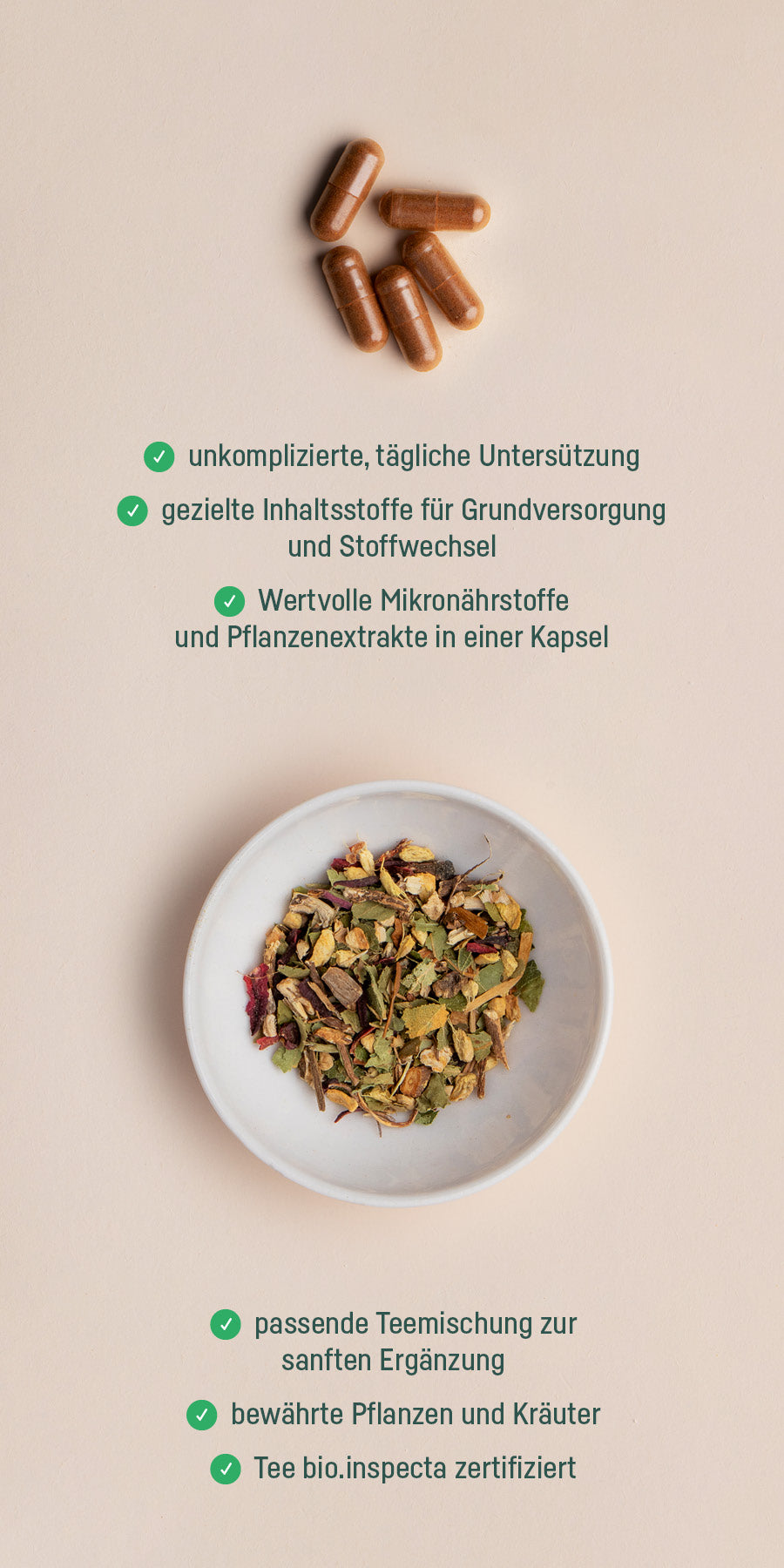 • bewährte pflanzliche Begleitung und funktionelle Nährstoffversorgung kombinieren möchtest
