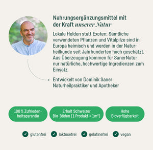 Für unsere Produkte hat der Apotheker und Naturheilpraktiker Dominik Saner sie mit grossem Wissen und langjähriger Erfahrung gezielt zusammengestellt.