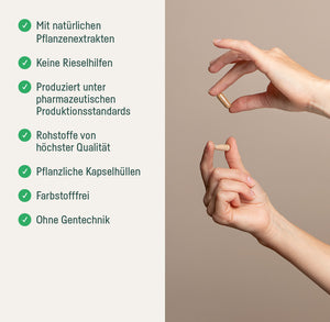 Grundsätzlich ist es bei Nahrungsergänzungsmitteln mit Pflanzenextrakten sinnvoll, hin und wieder eine Pause einzulegen, um zu beobachten, wie dein Körper ohne das Produkt reagiert.