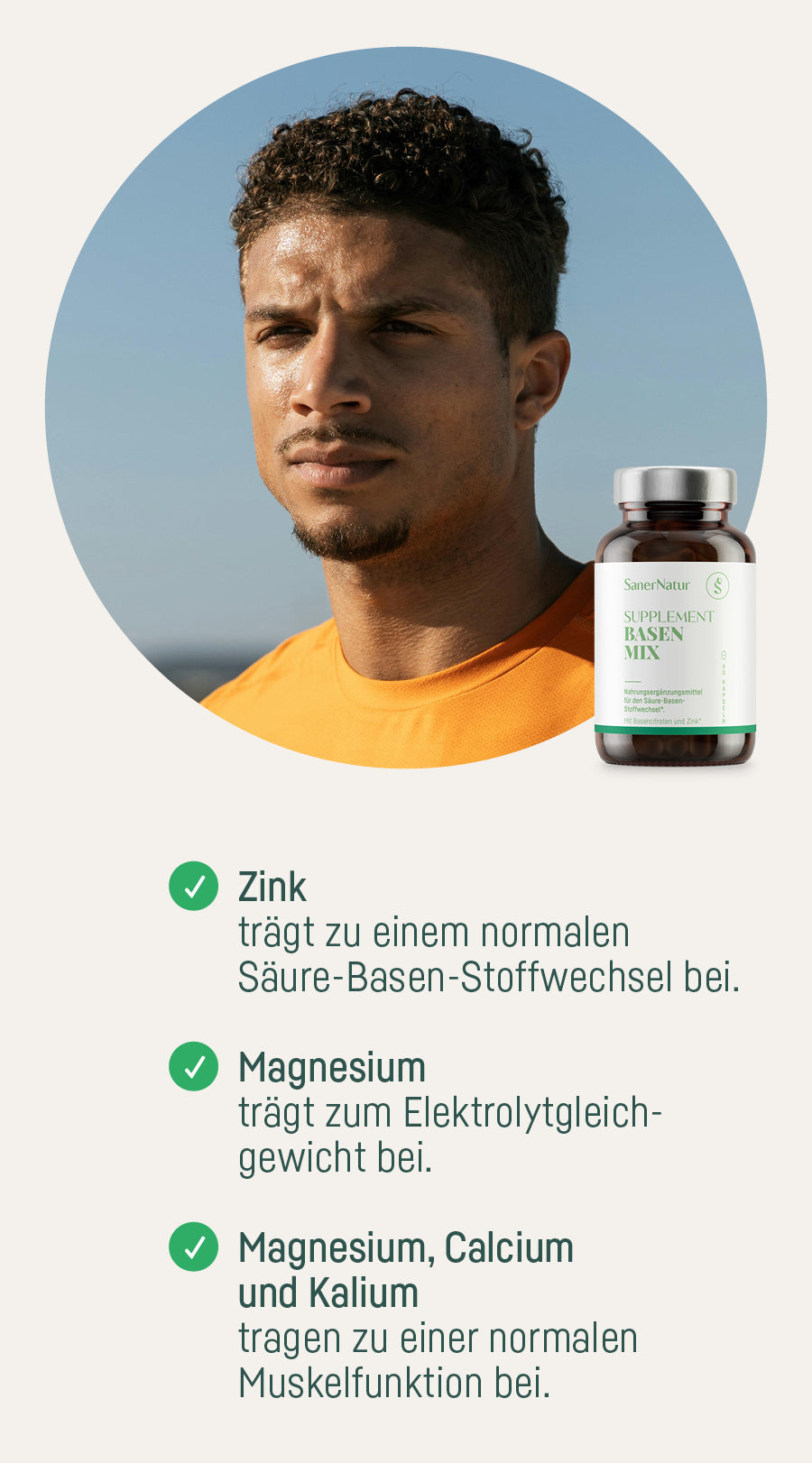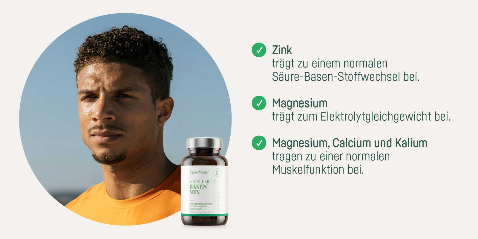 SanerNatur SUPPLEMENT BASEN MIX enthält eine einzigartige Komposition aus Mikronährstoffen: Mit Zink, Magnesium, Calcium und Kalium ist es speziell als Begleitung zum Entsäuern gedacht, z.B. mit einer basischen Ernährung, Fasten oder einer Säure-Basen-Kur. Die basische Ernährung fördert den Säure-Basen-Stoffwechsel und die Entsäuerung und bringt damit Schwung in den Körper.