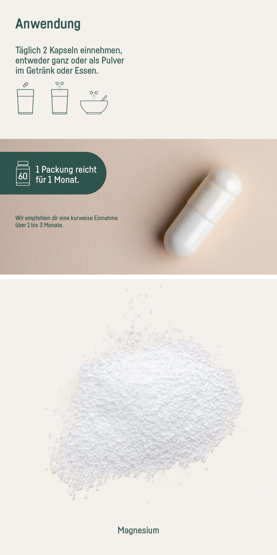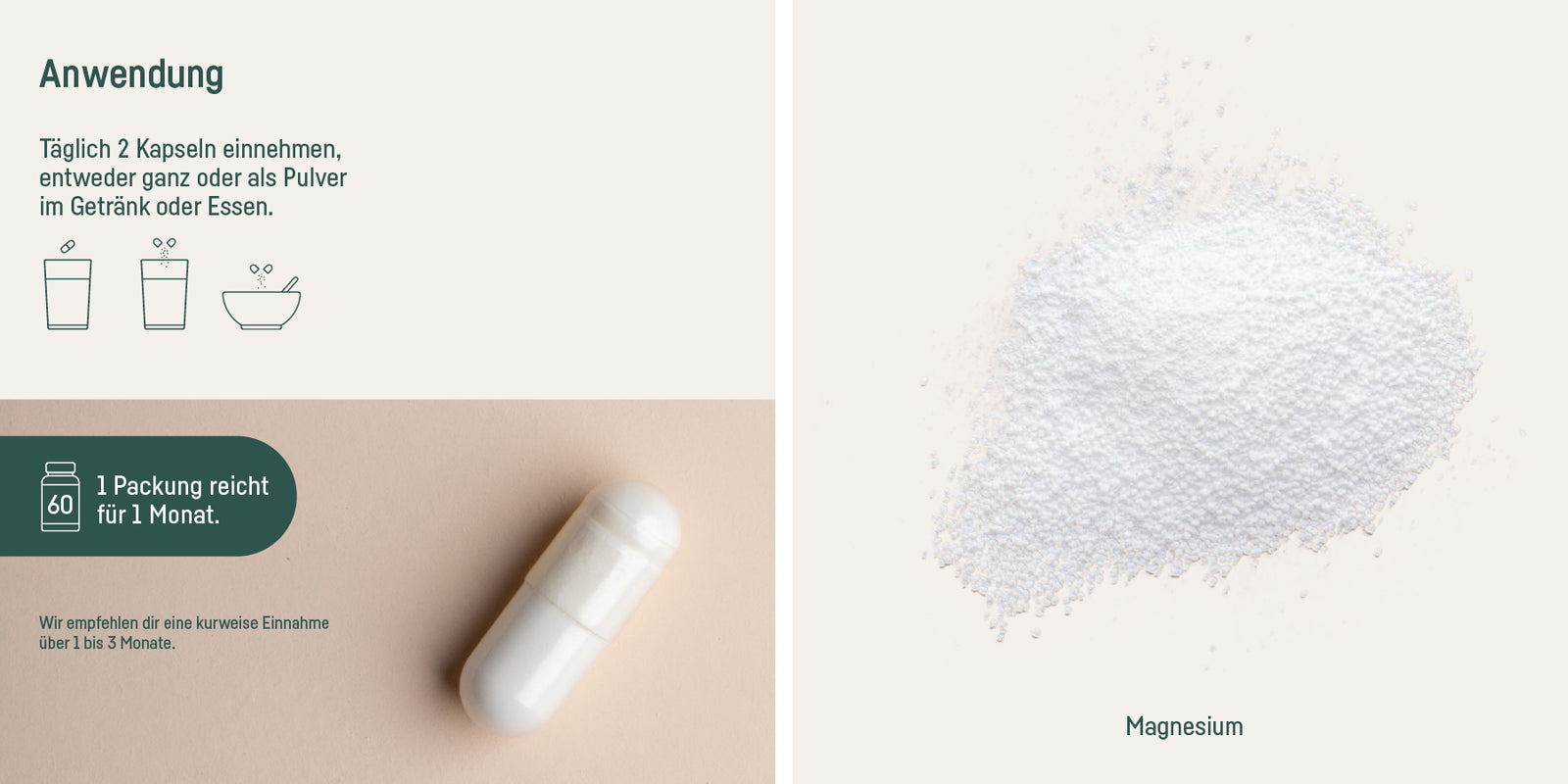 Wir empfehlen dir die tägliche Einnahme als Kur über 1-3 Monate, besonders in anspruchsvollen Phasen.