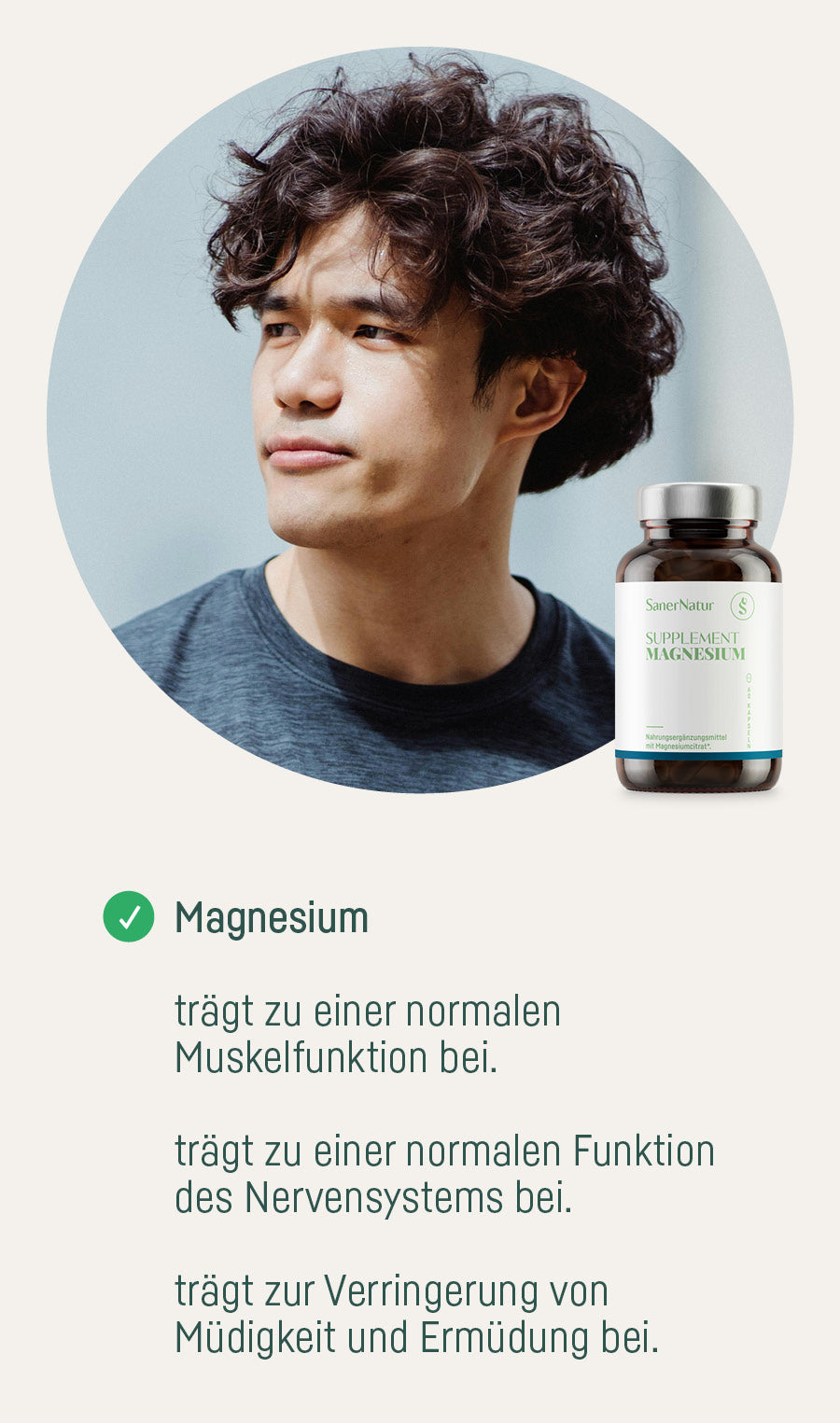 Magnesium ist ein sehr bekanntes Mineral mit vielen Funktionen im Körper. Eine gute Magnesiumversorgung ist für Nerven, Muskeln, aber auch Energie ein wichtiger Faktor. Insbesondere in körperlich oder geistig intensiven Phasen, etwa durch viel Sport, bei fordernden Projekten oder bei Stress, verbraucht der Körper viel Magnesium und kann dann sogar einen erhöhten Bedarf aufweisen.