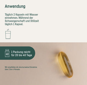 Während der Schwangerschaft und Stillzeit empfehlen wir dir, täglich 1 Kapsel einzunehmen.